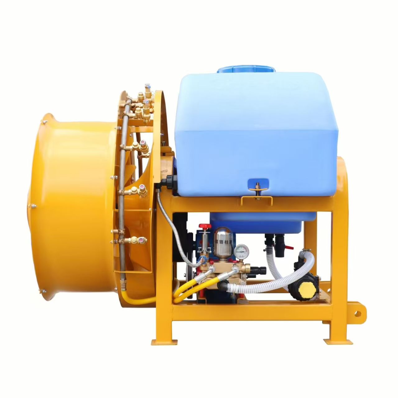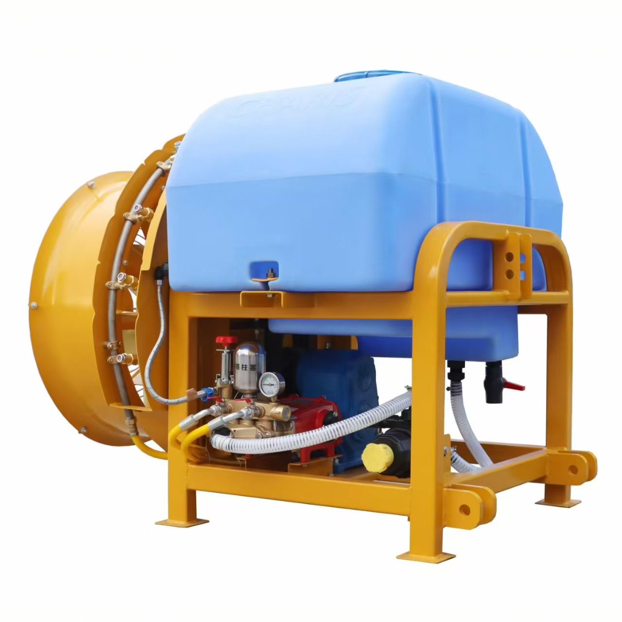 Diseñados para brindar durabilidad y rendimiento, los componentes clave utilizan materiales de primera calidad: el tanque de rociado está hecho de polietileno de grado alimenticio, resistiendo la corrosión de los productos químicos y evitando la oxidación; la bomba de alta presión adopta impulsores de acero inoxidable para un funcionamiento estable a largo plazo; y el ventilador de aire cuenta con aspas de fibra de vidrio reforzadas, lo que equilibra un diseño liviano con una fuerte potencia eólica para penetrar las marquesinas gruesas. Todas las juntas utilizan juntas de goma antifugas, minimizando derrames durante el trabajo.