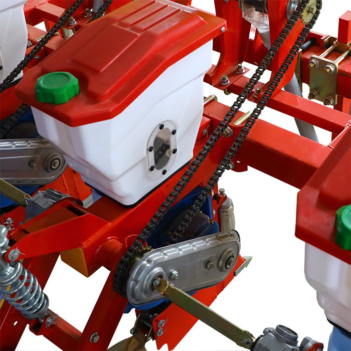 Los espaciadores de filas tienen escalas precisas, lo que garantiza un ajuste preciso. El conector de tracción tiene una estructura que absorbe los impactos, lo que reduce la vibración durante la operación y protege los componentes de la sembradora de maíz de precisión de 2 a 8 hileras de maíz y soja. Para los agricultores que buscan una siembra eficiente, precisa y a gran escala, la sembradora de maíz de precisión de 2 a 8 hileras de maíz y soja es una herramienta agrícola indispensable que ayuda a mejorar el rendimiento de los cultivos y reducir los costos agrícolas.