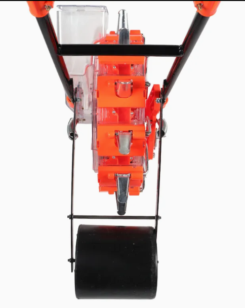 La sembradora de maíz de empuje manual y distancia ajustable consta de seis partes principales: un regulador de espaciado de precisión, una tolva de semillas de alta capacidad, una rueda de siembra resistente al desgaste, una manija de empuje ergonómica, una placa de control de profundidad y un cepillo para cubrir el suelo. El regulador de espaciado de la sembradora de maíz manual de empuje y distancia ajustable es el componente clave, con escalas claras para un fácil ajuste. La tolva de semillas de la sembradora de maíz de empuje manual y distancia ajustable está hecha de plástico antienvejecimiento, duradero y liviano. La rueda de siembra está envuelta en goma para evitar resbalones en campos embarrados, asegurando un funcionamiento estable. El mango de empuje está cubierto con espuma antideslizante, lo que reduce la fatiga de la mano durante el uso prolongado. La placa de control de profundidad y el cepillo para cubrir el suelo trabajan juntos para garantizar que las semillas de maíz se siembren correctamente.