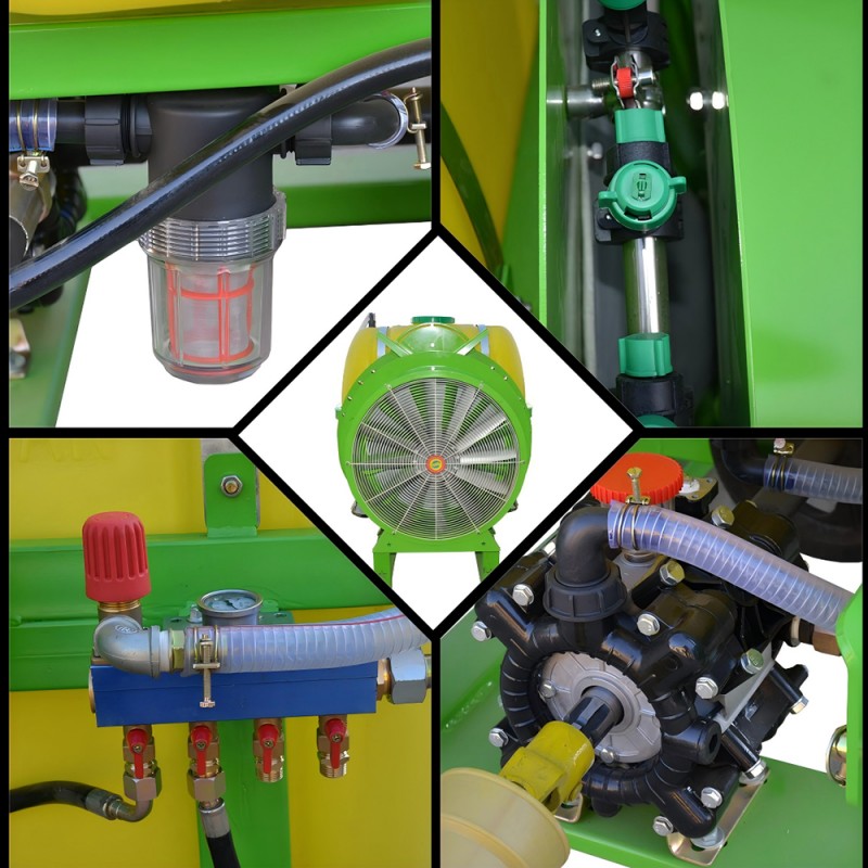 - Estable y confiable: utiliza un enganche de 3 puntos para un acoplamiento estable al tractor y ofrece bombas de diafragma o émbolo de 3/4 de cilindro para mantener una presión de pulverización constante.