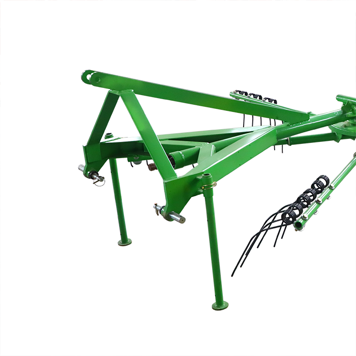 Los rastrillos giratorios para heno presentan un diseño modular y constan principalmente de una caja de cambios completamente sellada, un brazo oscilante de alta resistencia, dientes de resorte flexibles, un mecanismo de guía de leva y un sistema de ajuste hidráulico. La caja de cambios es el núcleo de la transmisión de potencia y, junto con el eje de transmisión universal, logra una salida de potencia estable. El brazo giratorio tiene dientes de resorte distribuidos uniformemente para garantizar que no haya puntos ciegos durante la operación. El marco está hecho de acero de alta resistencia en una sola pieza y está equipado con juegos de ruedas multifuncionales y neumáticos de transporte. Cada componente está calibrado con precisión y el desmontaje y el mantenimiento son simples y convenientes, lo que lo hace adecuado para acoplarlo a tractores de diferentes potencias.