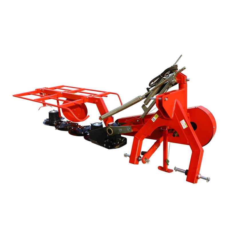 Cuando se monta en un tractor, la cortadora de césped cortadora de césped con tambor para tractor obtiene energía a través de la toma de fuerza para impulsar el tambor y los discos. Los discos giratorios cortan el heno y la hierba de forma limpia, mientras que el tambor recoge los recortes para esparcirlos o recogerlos uniformemente.
