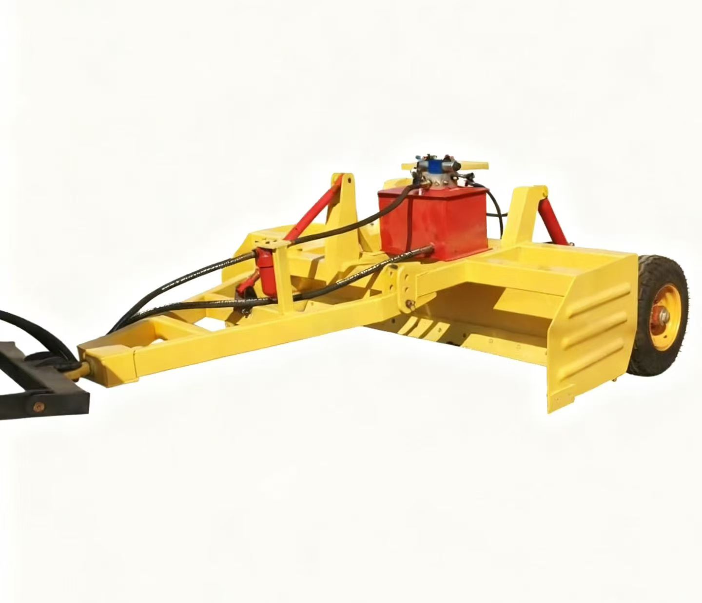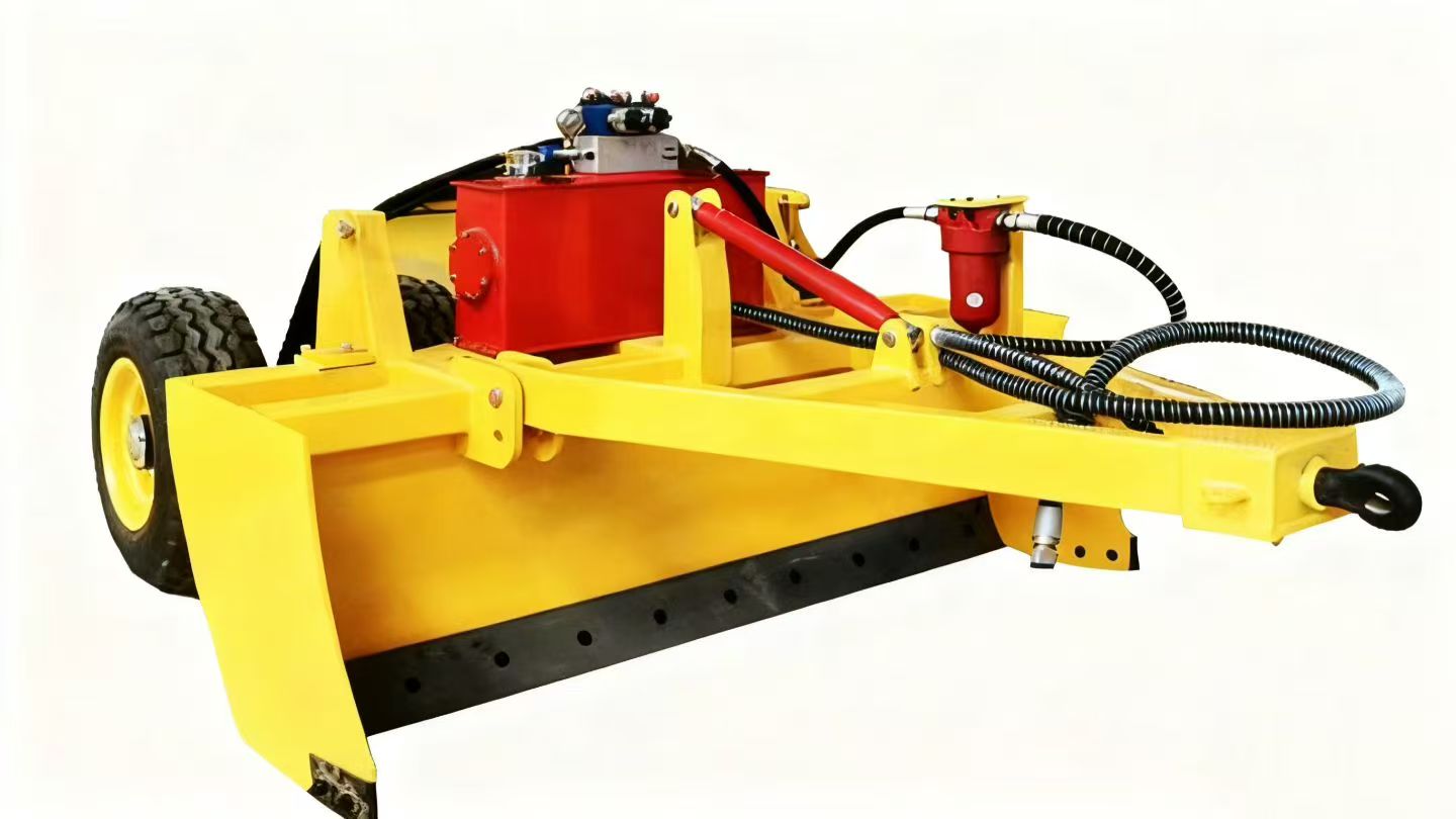 2. Hoja niveladora: Fabricada en acero de alta resistencia, ajustable en ángulo para empujar y alisar el suelo.