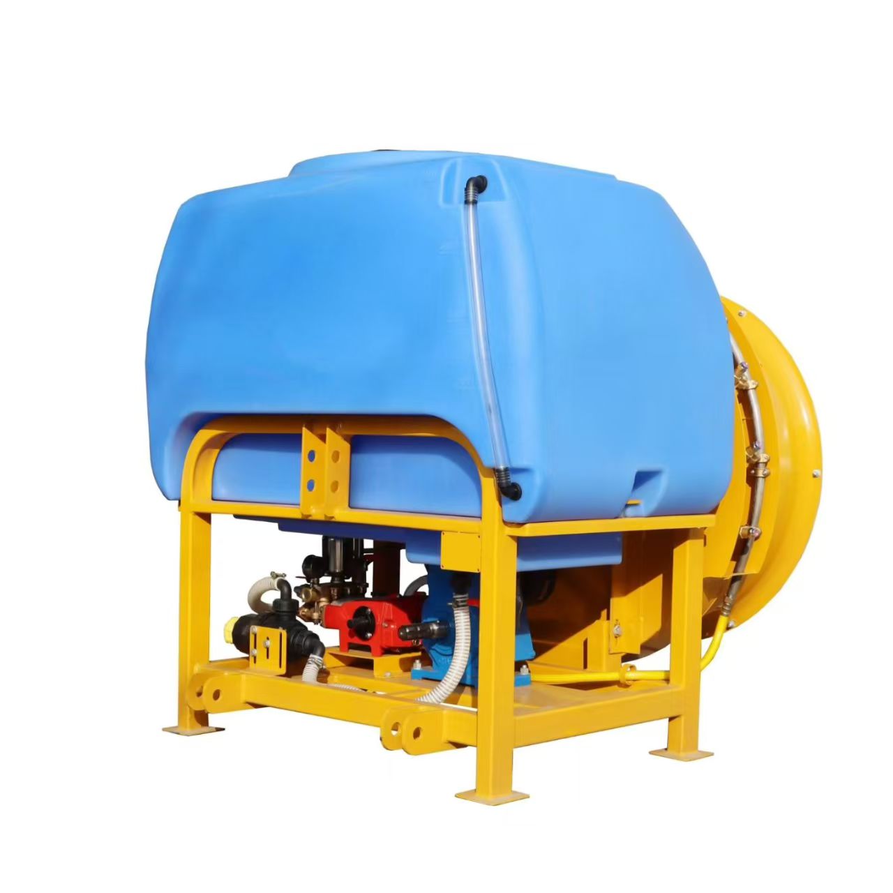 - Tanque y entrega: Incluye un tanque de plástico anticorrosión de 300-1000 L y un sistema de tuberías de alta presión con boquillas de latón, que admiten un control de flujo preciso (0,3-2 L/min por boquilla) a través de una bomba accionada por un tractor.